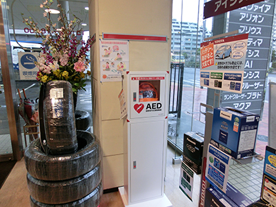 東京トヨタ自動車株式会社 江東砂町店には2015年2月9日にAEDが納品され、2月20日にそのAEDを使用して救助に成功しました。設置からわずか11日目の出来事でした。
